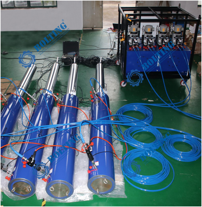 BOLTING博霆1600噸PLC控制全自動同步頂升系統(tǒng)(數(shù)控智能油缸同步控制系統(tǒng))實驗中
