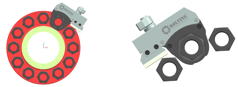 石油防噴器采油樹專用缺口式超薄中空液壓扭矩/扭力/力矩扳手,緊固或拆卸過程中,無需反復(fù)取下,一次安裝即可