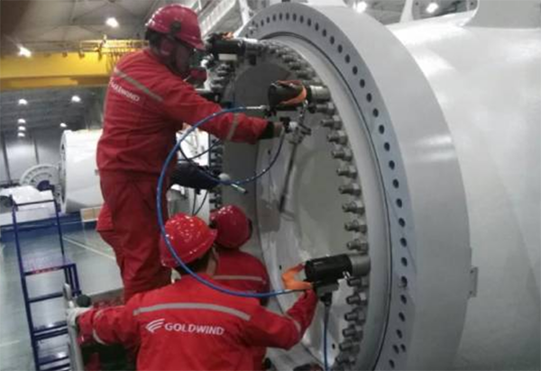 這也就是為什么在實際的風(fēng)力發(fā)電機安裝過程中為什么要使用高精度的液壓扳手和風(fēng)電專用螺栓拉伸器來嚴格按照要求施加預(yù)緊力預(yù)緊風(fēng)機螺栓,避免因精度不足造成實際作用在螺栓上的預(yù)緊力過小導(dǎo)致螺栓實際壽命低于設(shè)計壽命。